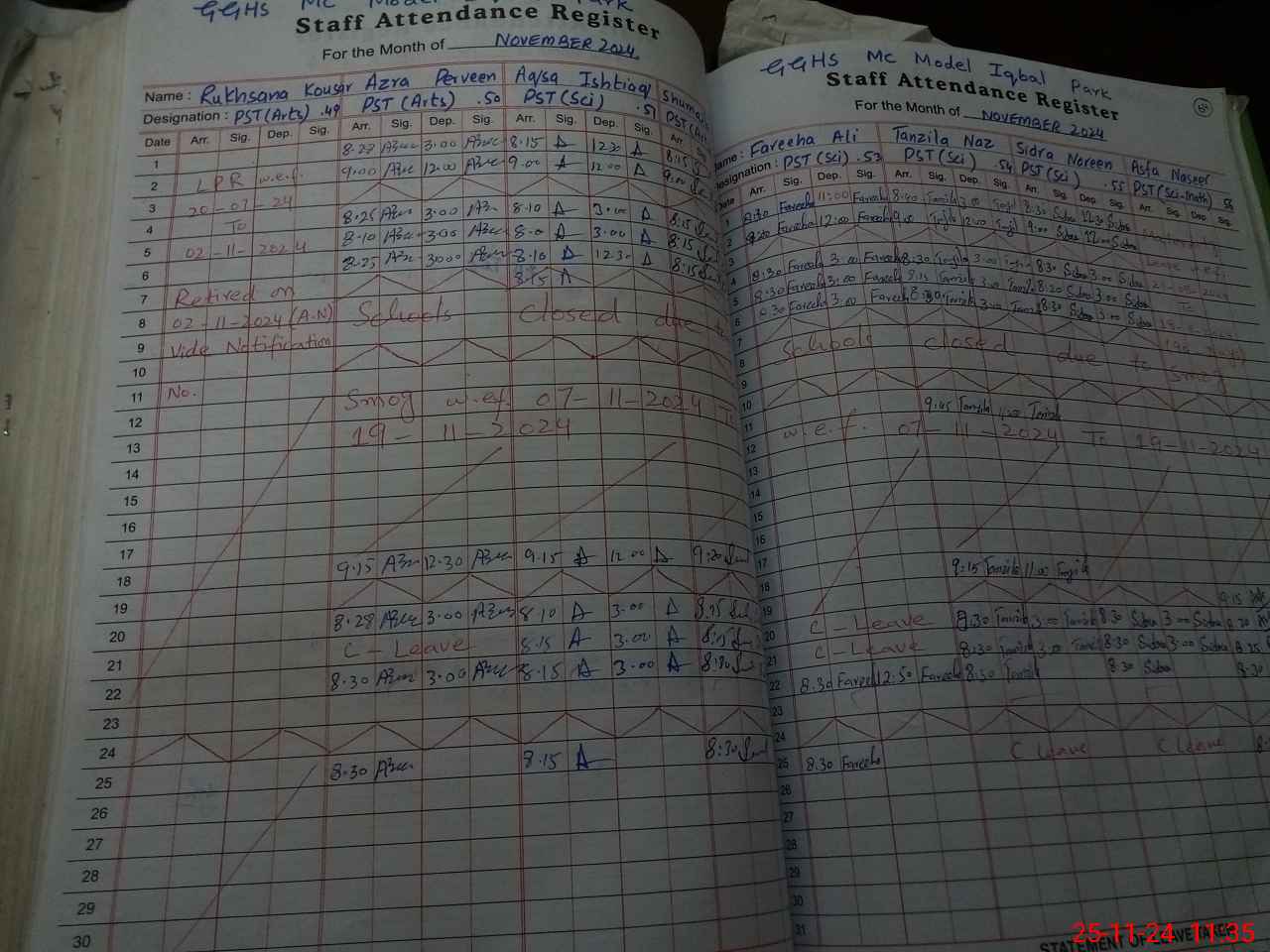| Monitoring Date: 25-11-2024 | Start Time: 25-11-2024 10:53 AM | End Time: 25-11-2024 12:30 PM | Name of MEA: Ra**** Hu**** Gi**** | |