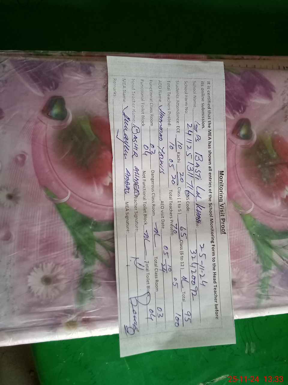 | Attendance Register | Head Teacher | MEA with School | Visit Proof |