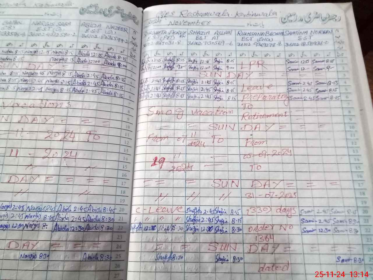 | CNIC | Full Name | Designation | R/C | Absence During Last Calender Month |