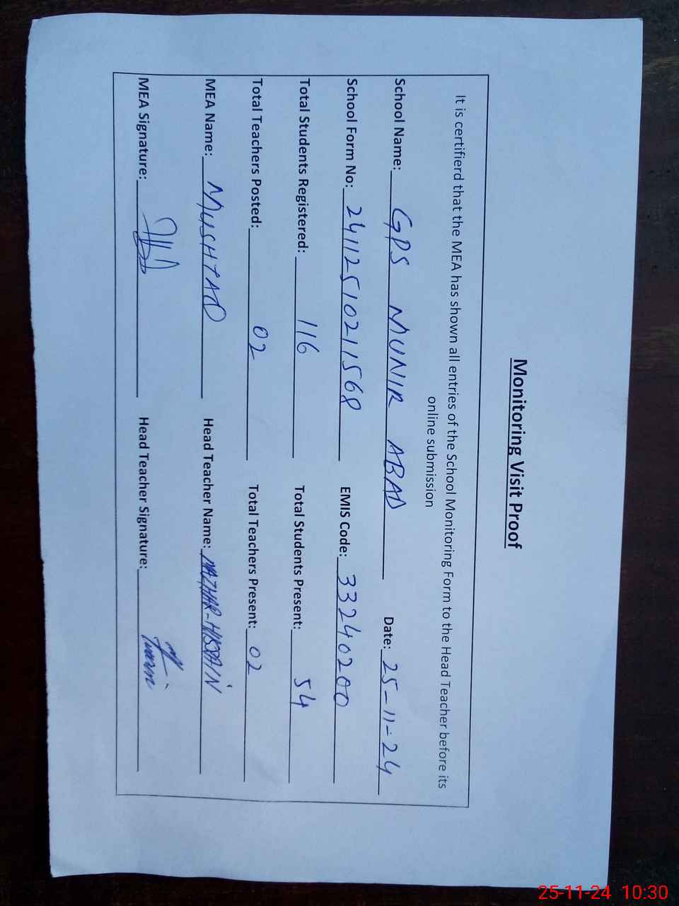 | EMIS Code: 33240200 | Name of School: GPS MUNIR ABAD | |||