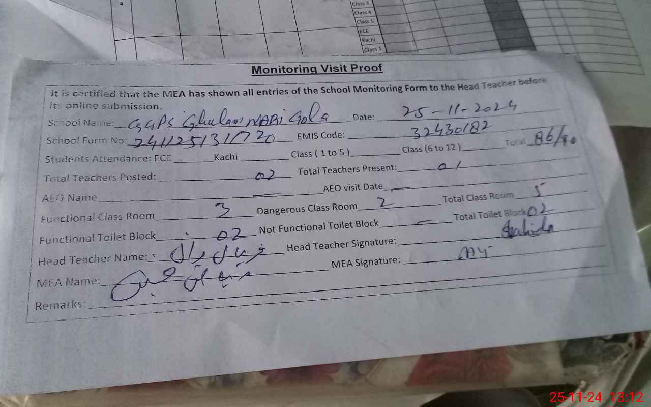 | EMIS Code: 32430182 | Name of School: GGPS GHULAM NABI GOLA | |||
