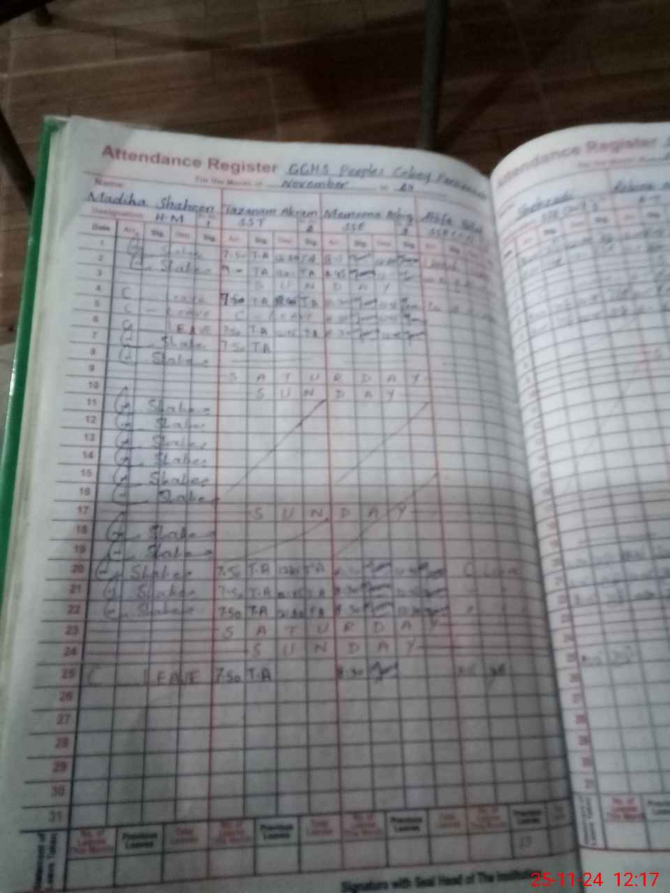 | CNIC | Full Name | Designation | R/C | Absence During Last Calender Month |