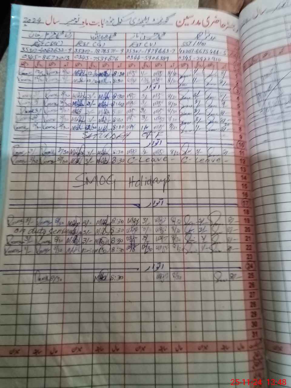 | Leave | Duty | Absent | Maternity | Medical | Ex- Pak |