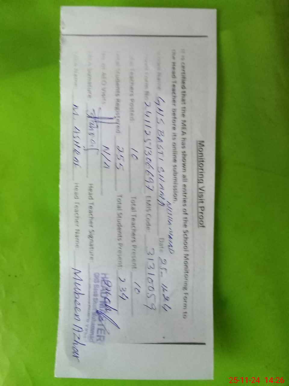 | EMIS Code: 31310059 | Name of School: GHS BASTI SHAH MUHAMMAD | |||