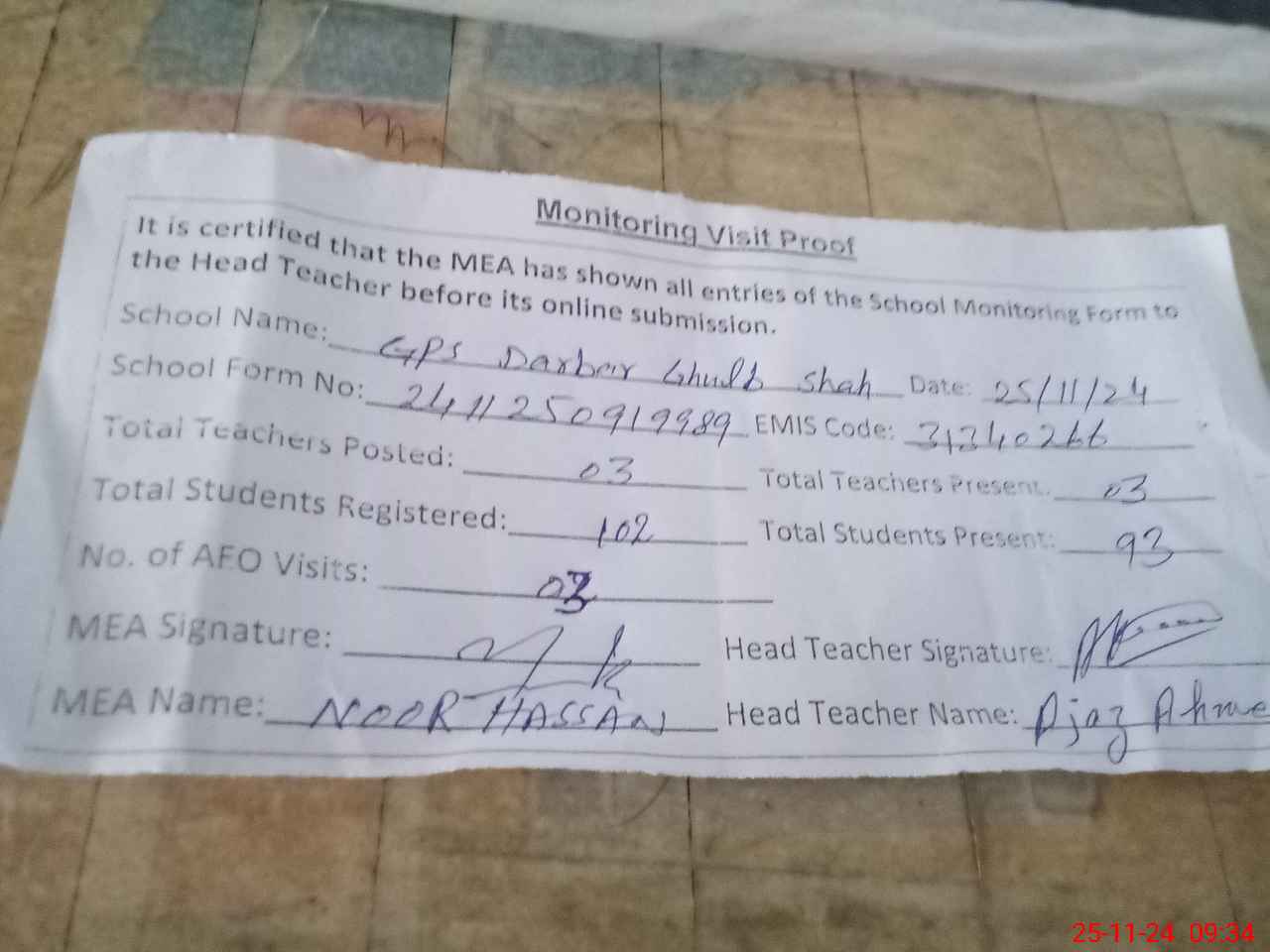 | EMIS Code: 31340266 | Name of School: GPS DARBAR GHULAB SHAH | |||
