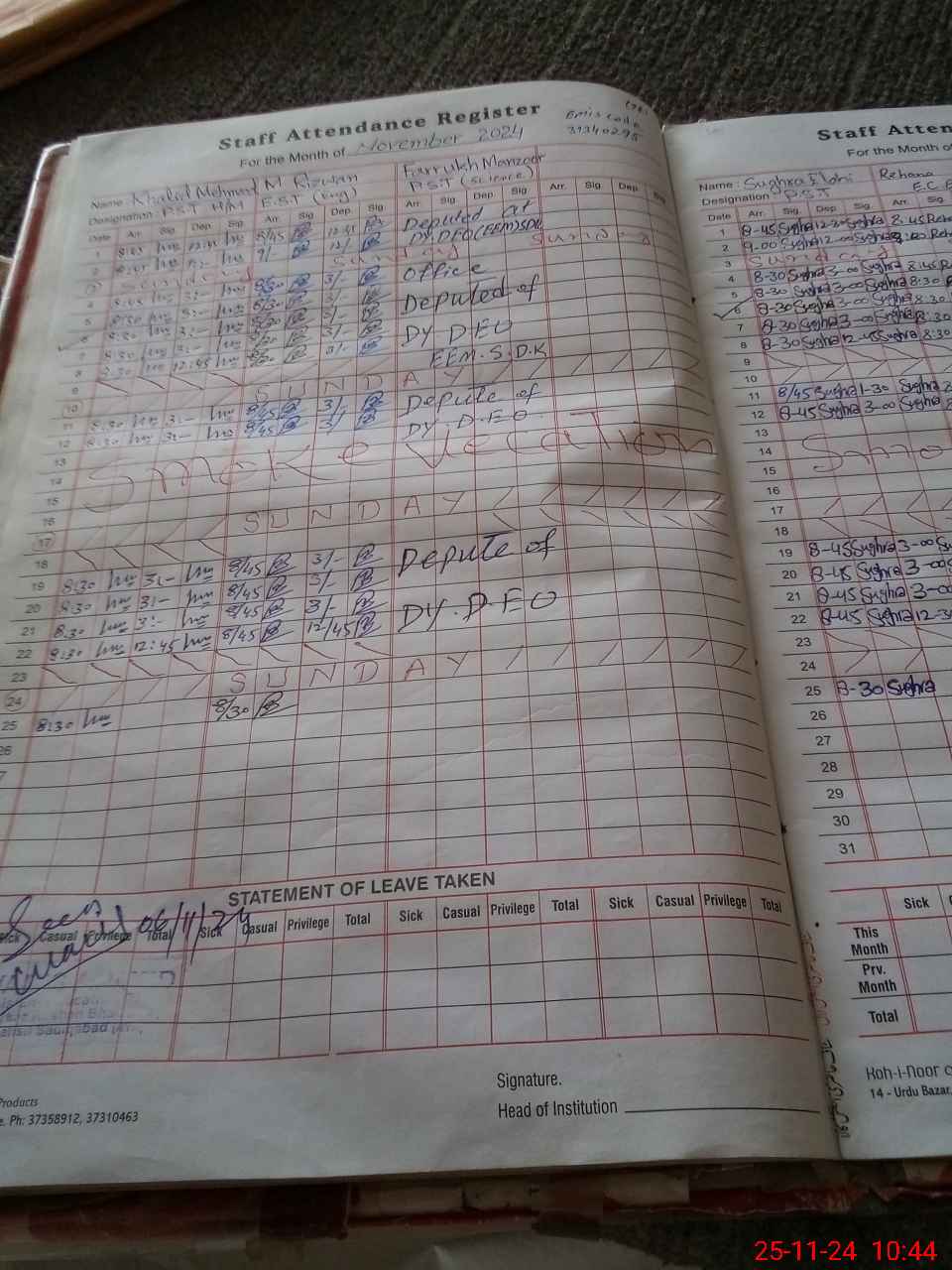 | Remarks (Use Separate Page if Required): Sis not working Students attendance according to attendance register Farrukh manzoor Absent no sanctioned order available at the time of visit | |||||