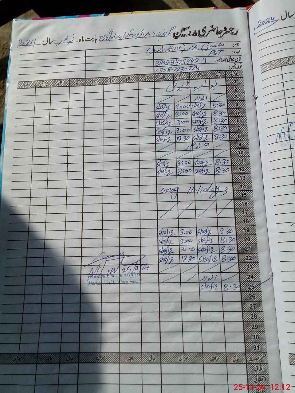 | Name: Sh**** Ah**** Designation: (School Headmaster's/Headmistress's) PST Phone/Cell Number: 03**** |