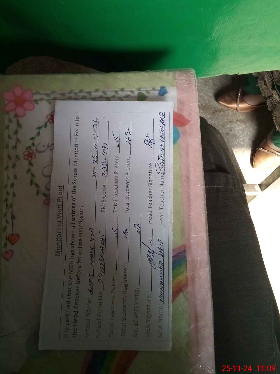 | Attendance Register | Head Teacher | MEA with School | Visit Proof |