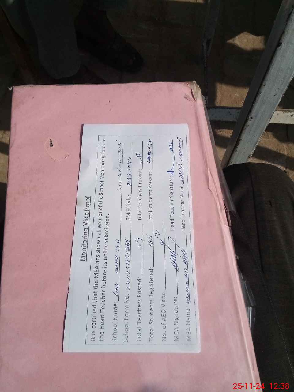 | Attendance Register | Head Teacher | MEA with School | Visit Proof |