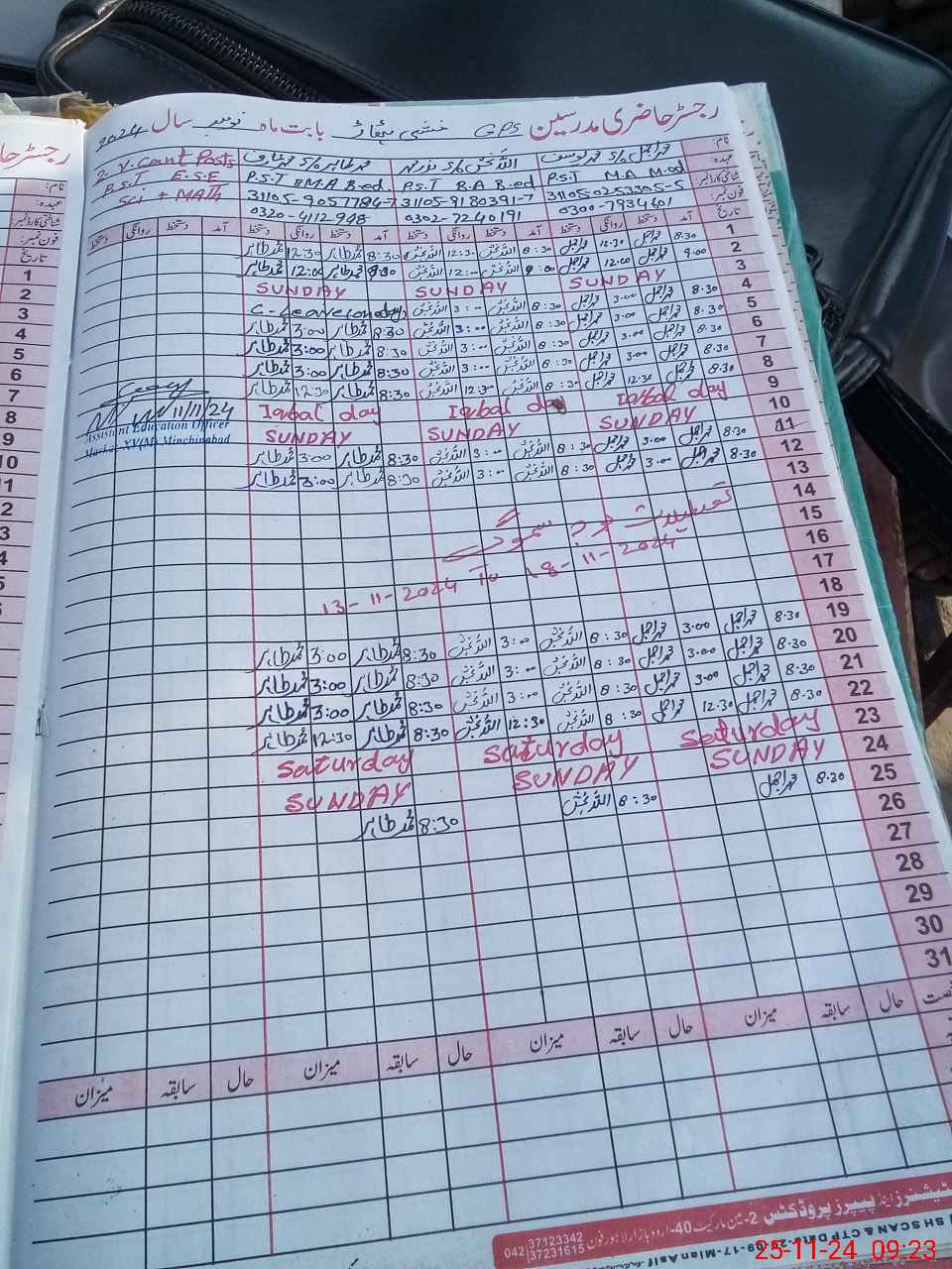 | Name: Mu**** Aj**** Designation: (School Headmaster's/Headmistress's) PST Phone/Cell Number: 03**** |