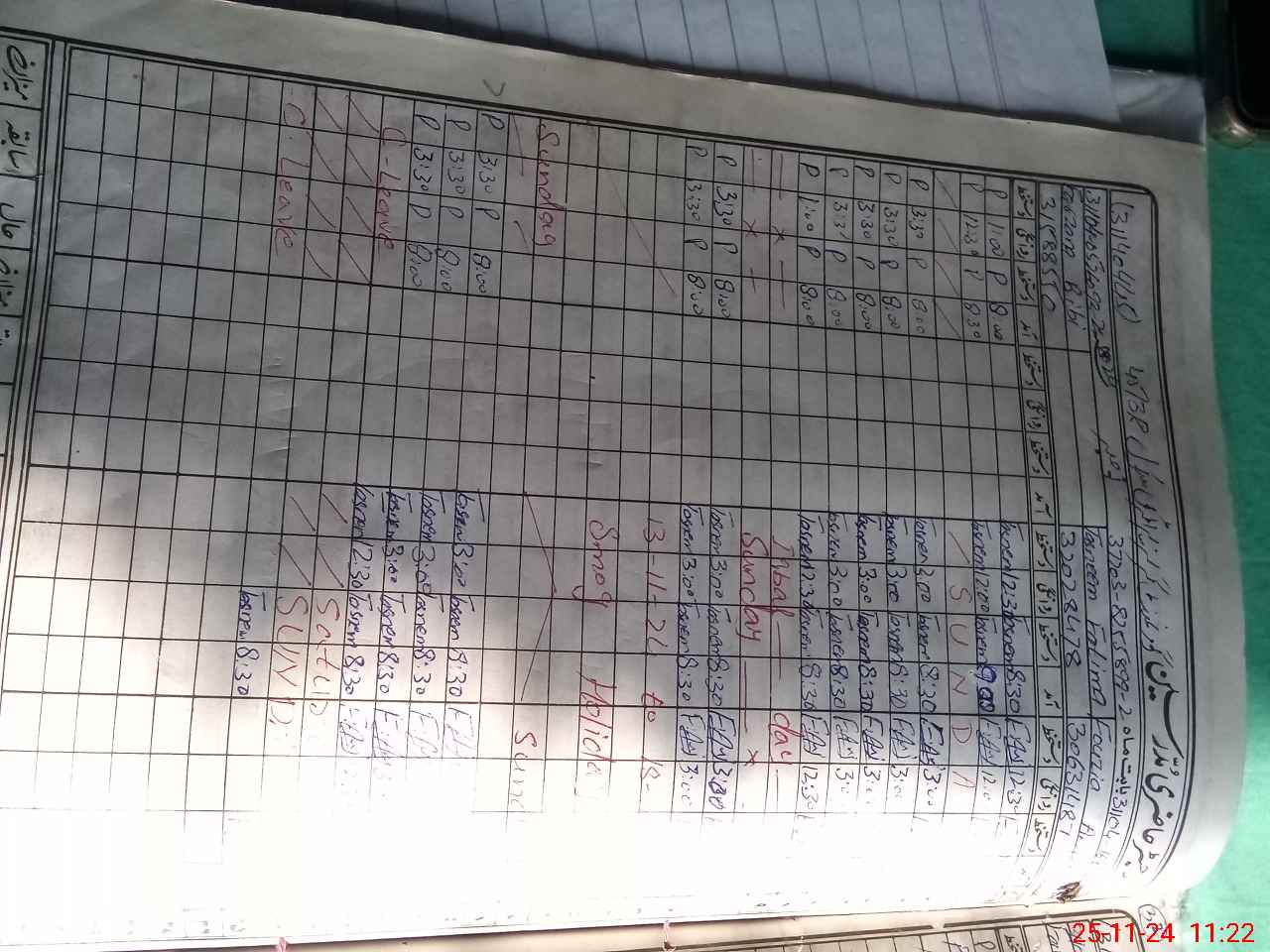 | CNIC | Full Name | Designation | R/C | Absence During Last Calender Month |