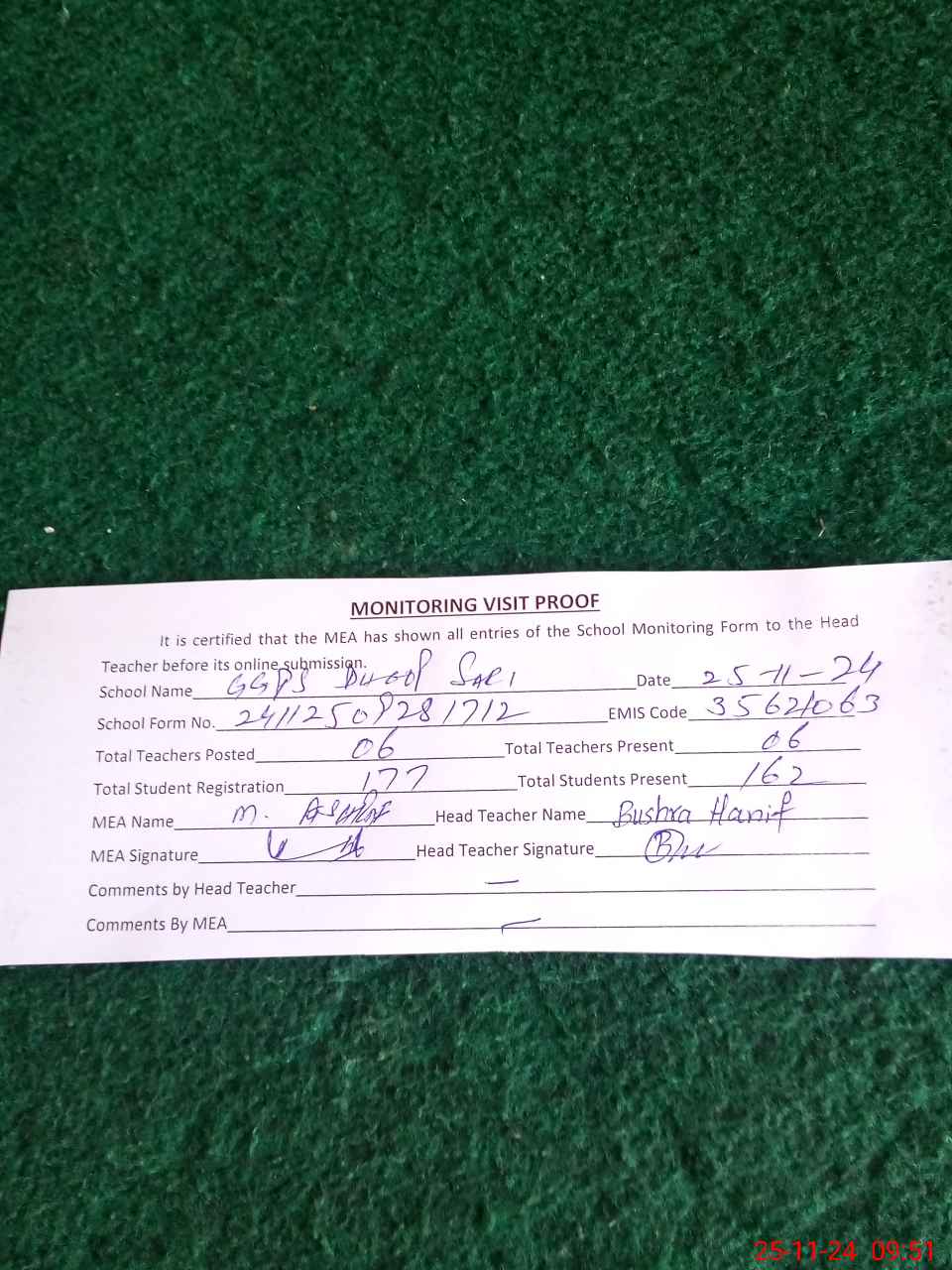 | EMIS Code: 35621063 | Name of School: GGPS DHUPP SARRI CHAK 78 | |||