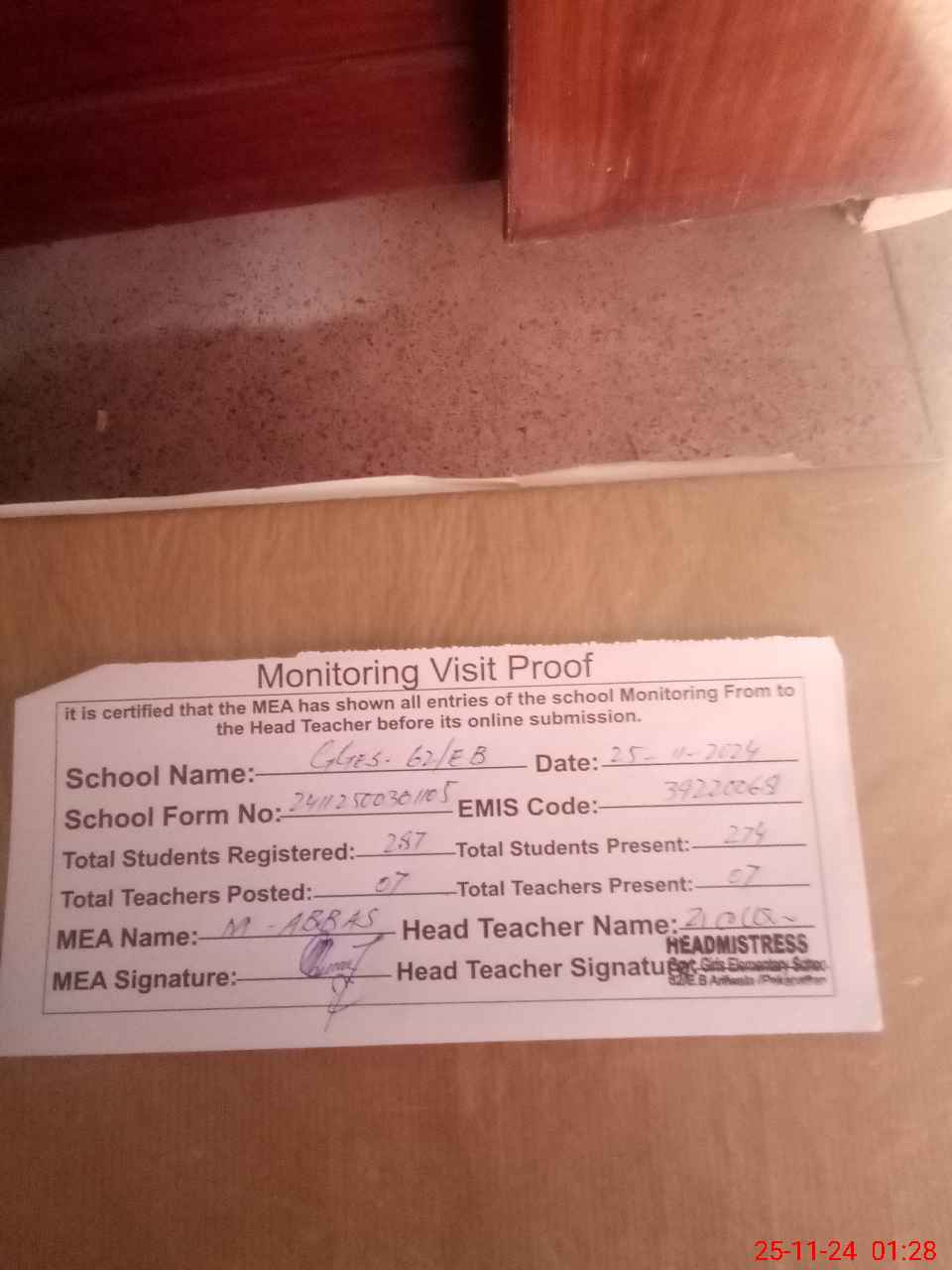 | EMIS Code: 39220068 | Name of School: GGES 62 EB P/O 58 EB | |||