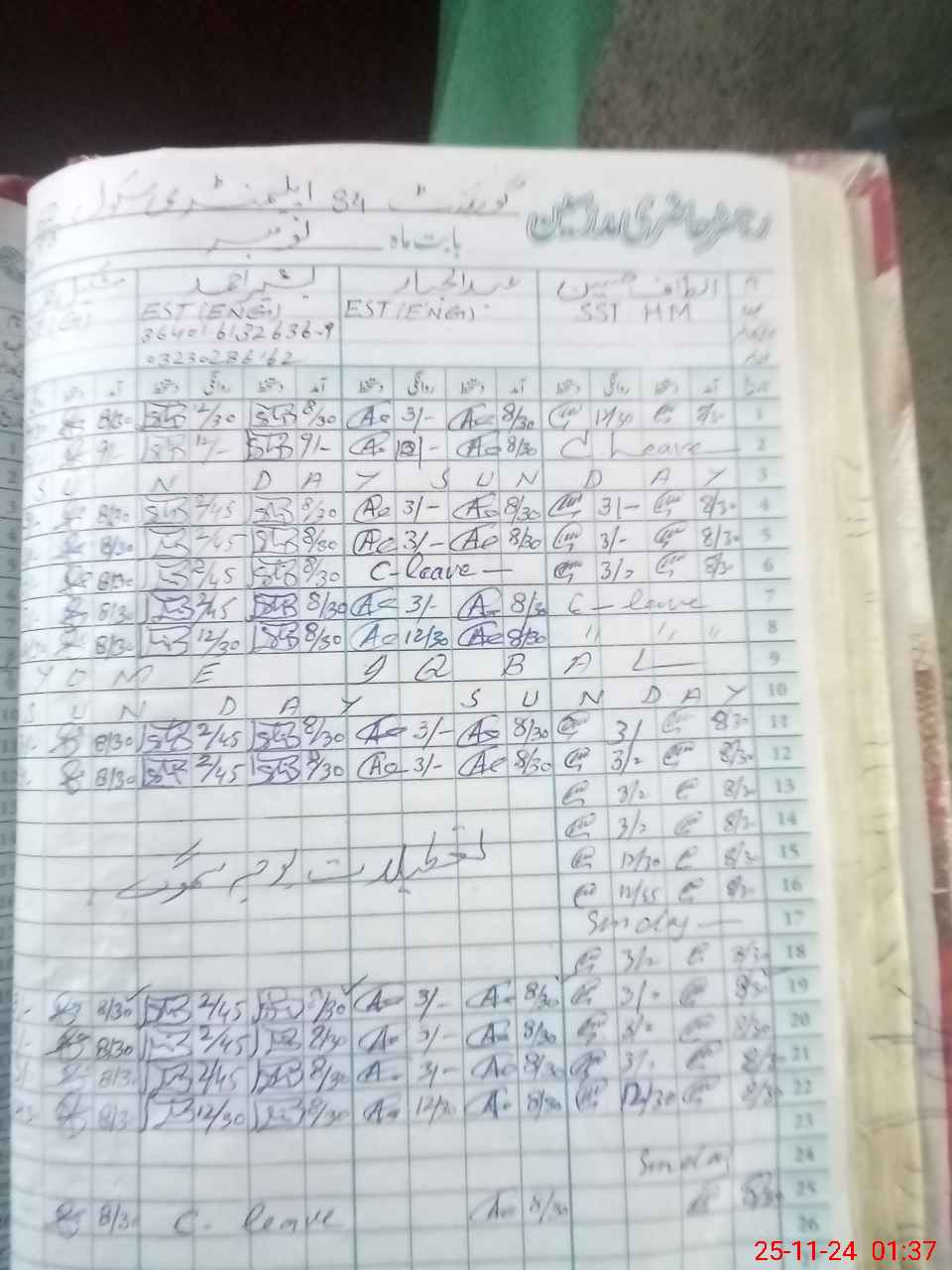 | CNIC | Full Name | Designation | R/C | Absence During Last Calender Month |