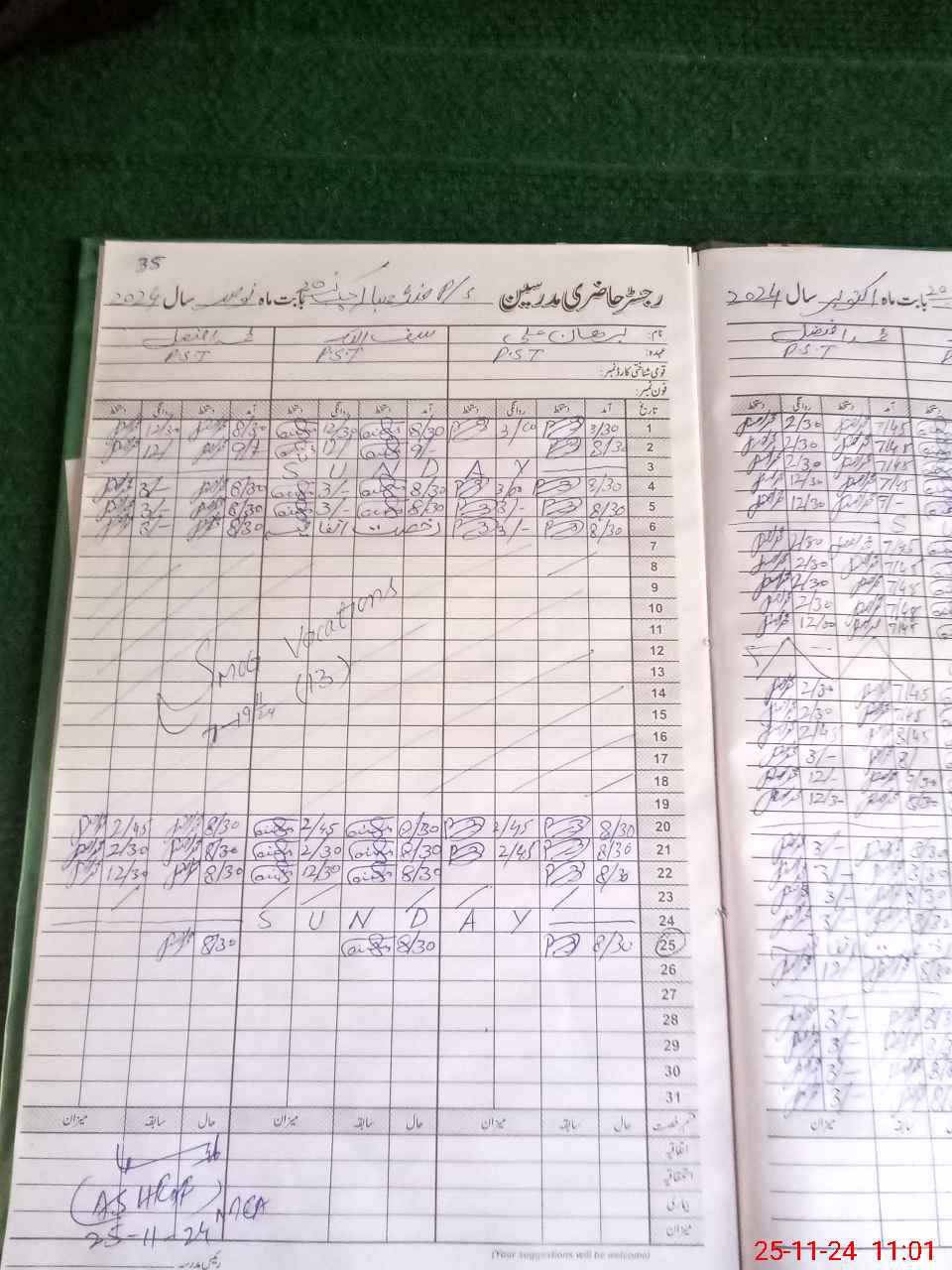 | CNIC | Full Name | Designation | R/C | Absence During Last Calender Month |