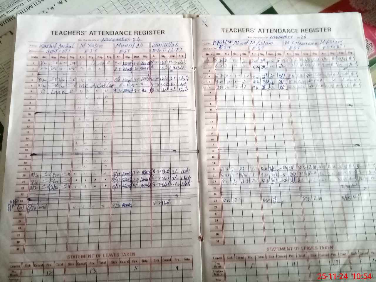 | CNIC | Full Name | Designation | R/C | Absence During Last Calender Month |