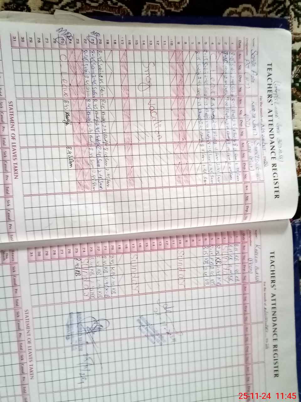 | Leave | Duty | Absent | Maternity | Medical | Ex- Pak |