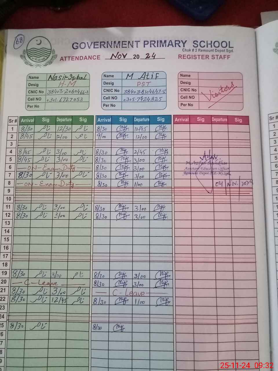 | Name: NA**** IQ**** AH**** Designation: (School Headmaster's/Headmistress's) PST Phone/Cell Number: 03**** |