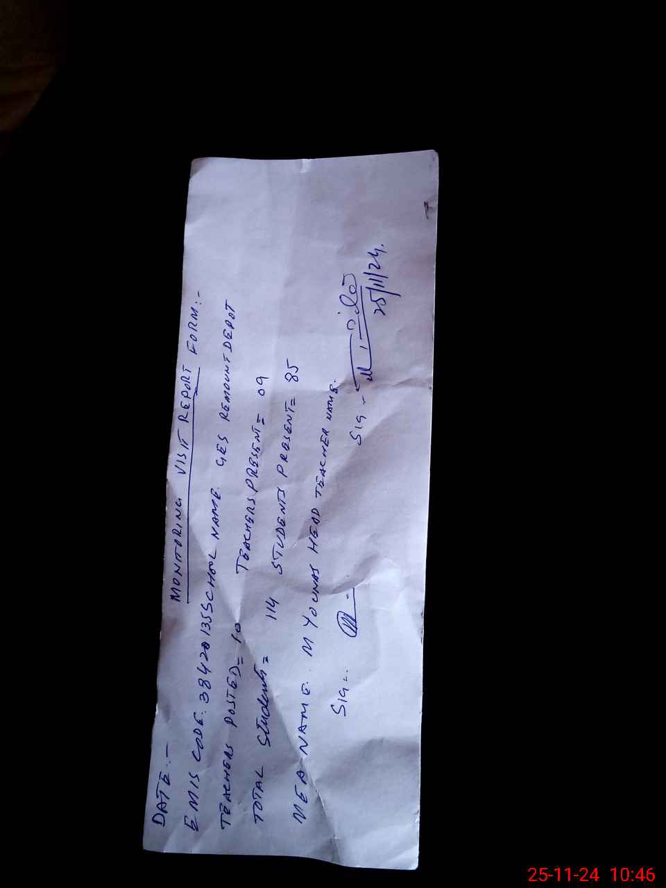 | Attendance Register | Head Teacher | MEA with School | Visit Proof |