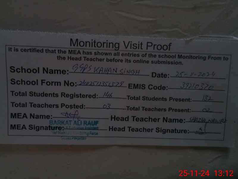 | EMIS Code: 39210370 | Name of School: GGPS KAHAN SINGH | |||