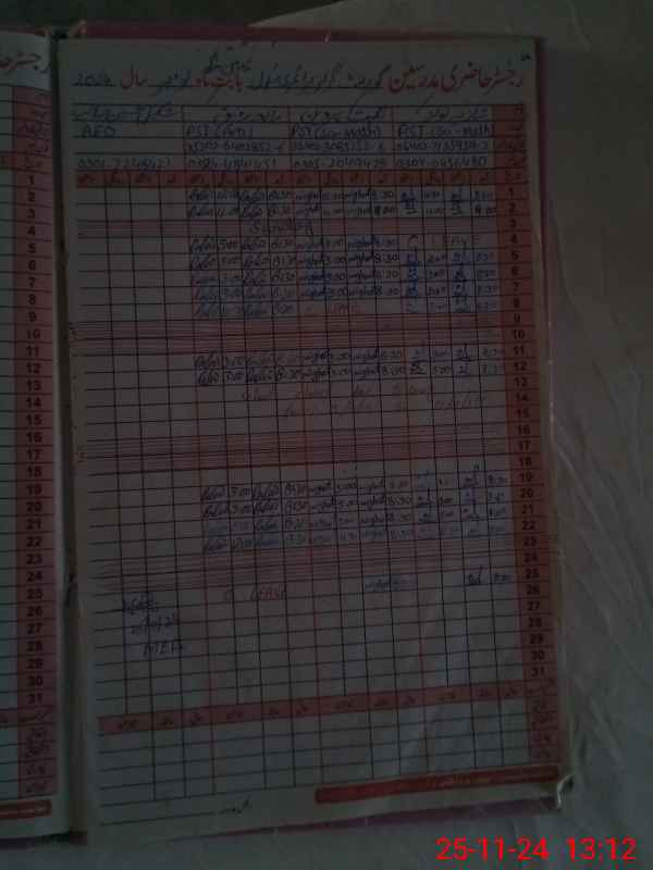 | CNIC | Full Name | Designation | R/C | Absence During Last Calender Month |