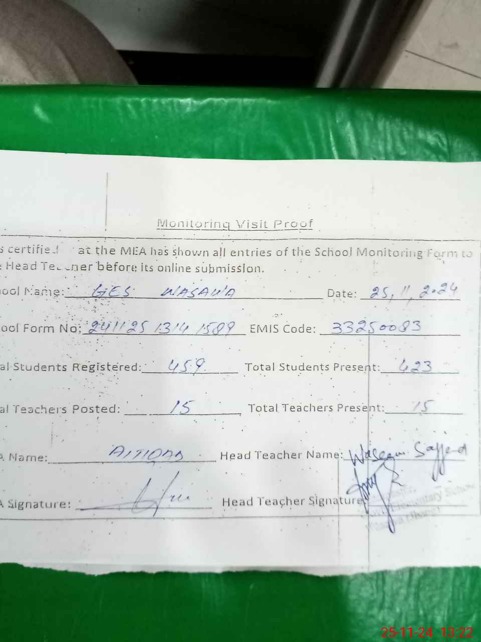 | EMIS Code: 33250083 | Name of School: GES WASAWA | |||