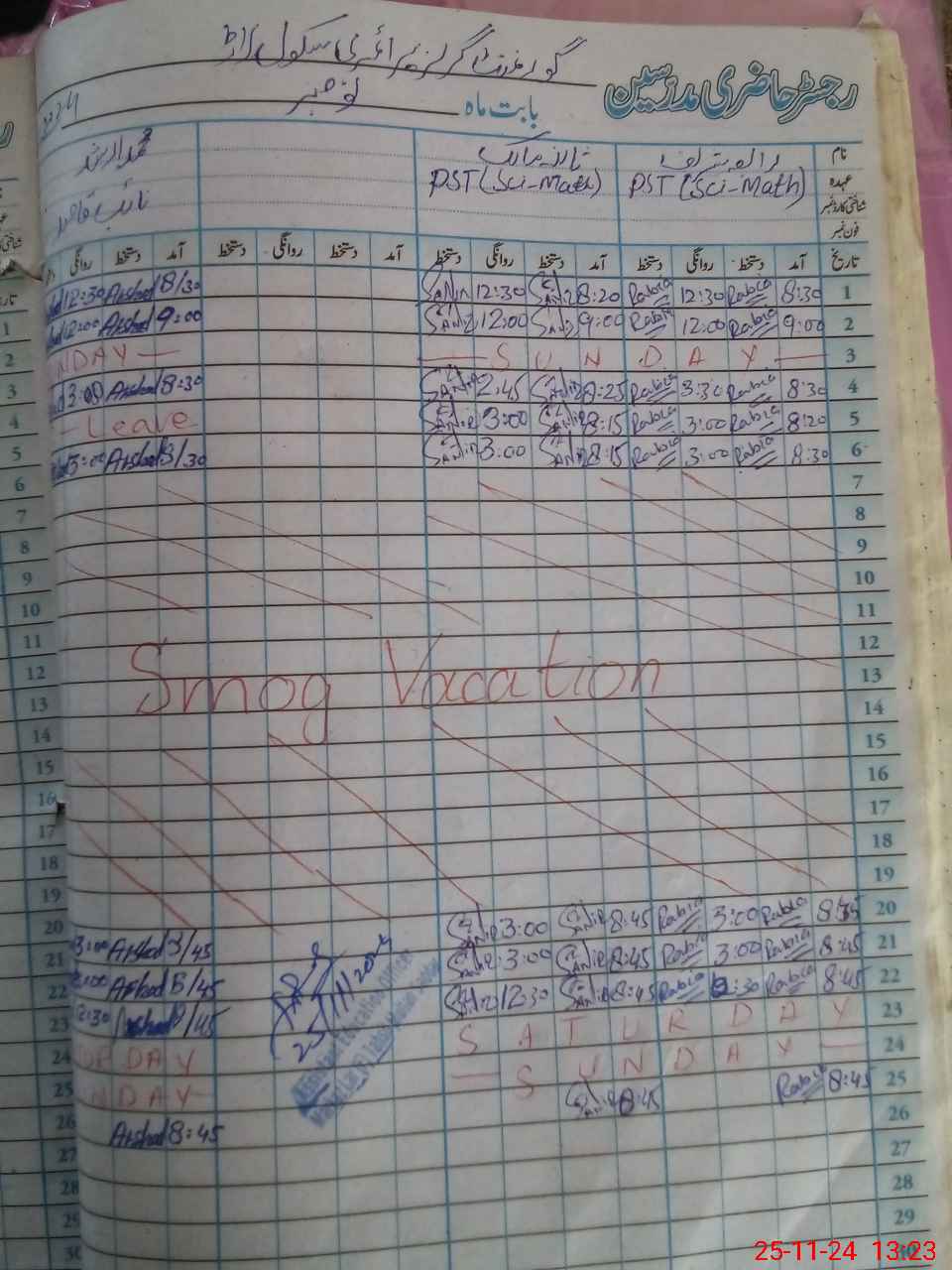 | CNIC | Full Name | Designation | R/C | Absence During Last Calender Month |