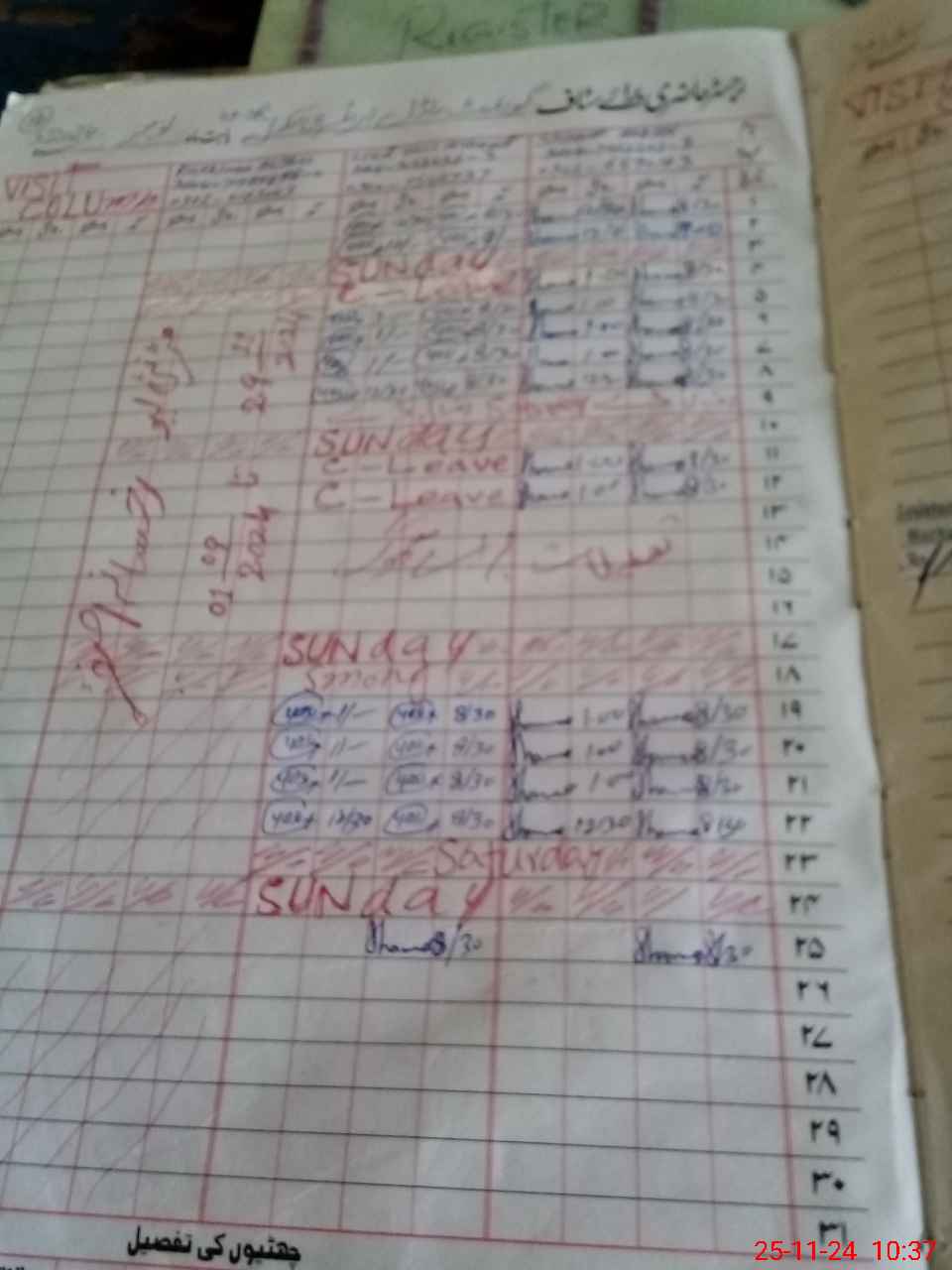 | CNIC | Full Name | Designation | R/C | Absence During Last Calender Month |