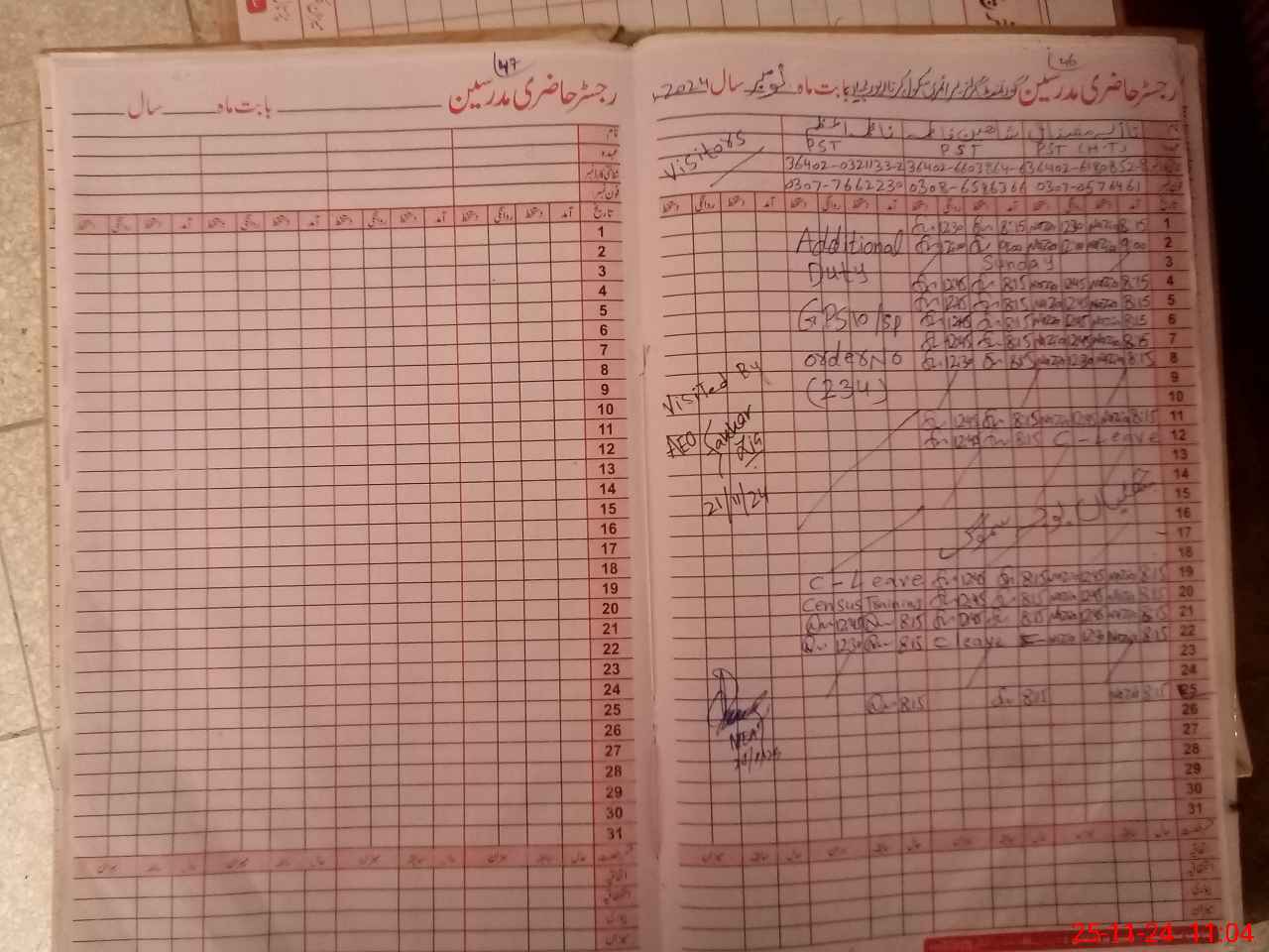 | Leave | Duty | Absent | Maternity | Medical | Ex- Pak |