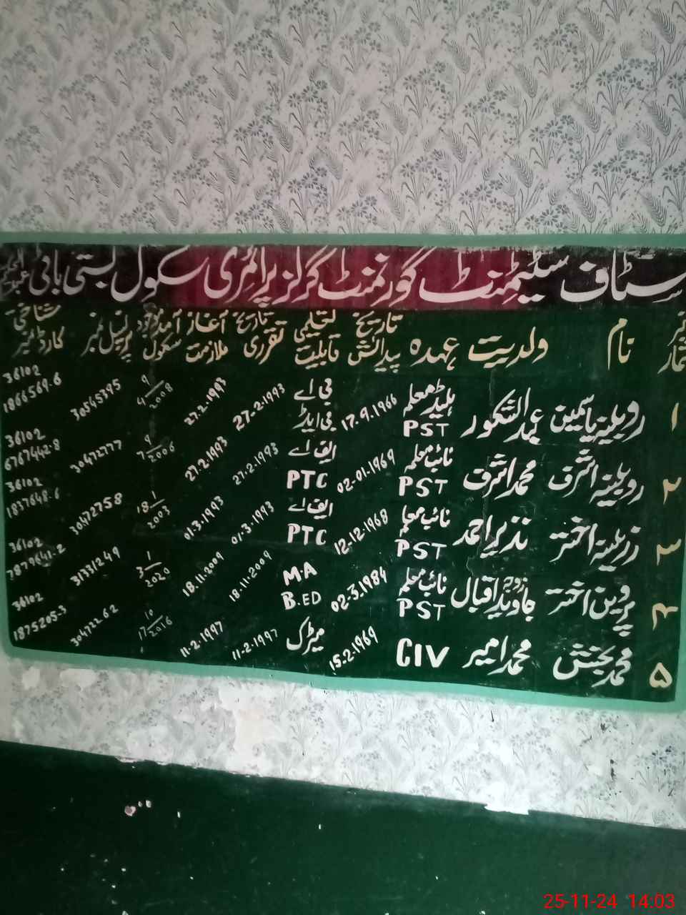 | Name: Ro**** Ya**** Designation: (School Headmaster's/Headmistress's) PST Phone/Cell Number: 03**** |