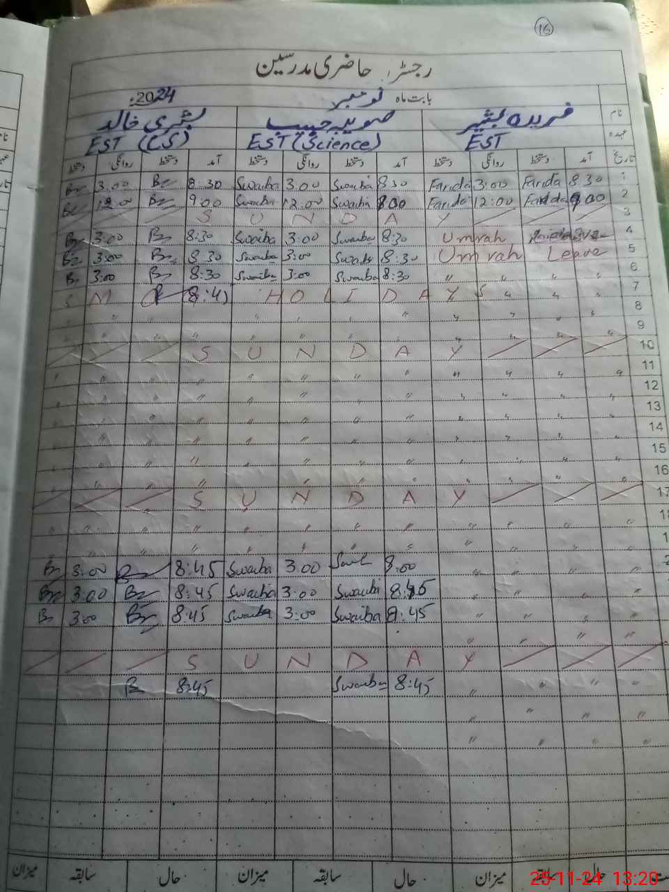 | CNIC | Full Name | Designation | R/C | Absence During Last Calender Month |