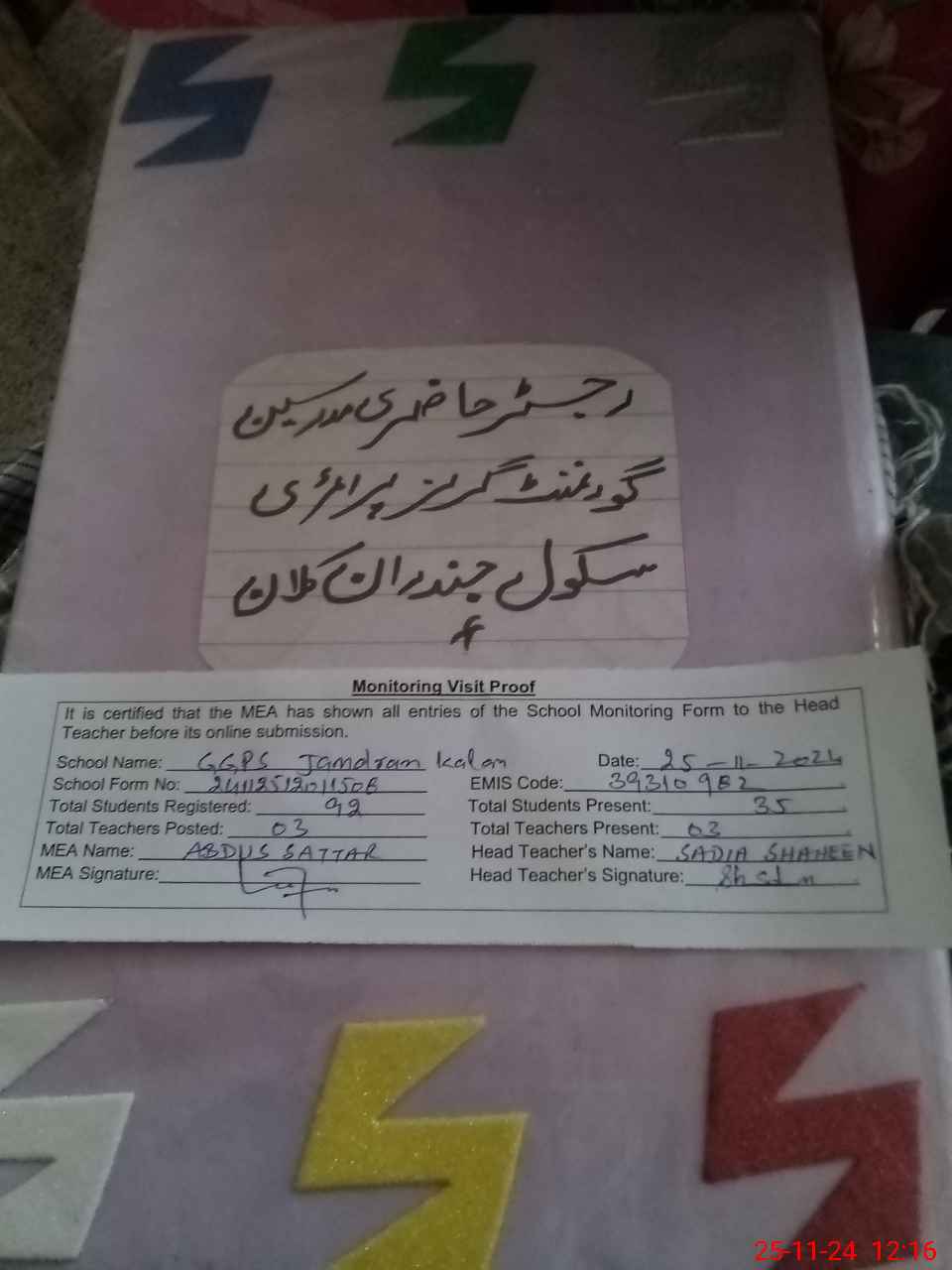 | EMIS Code: 39310982 | Name of School: GGPS JANDARAN KALAN | |||