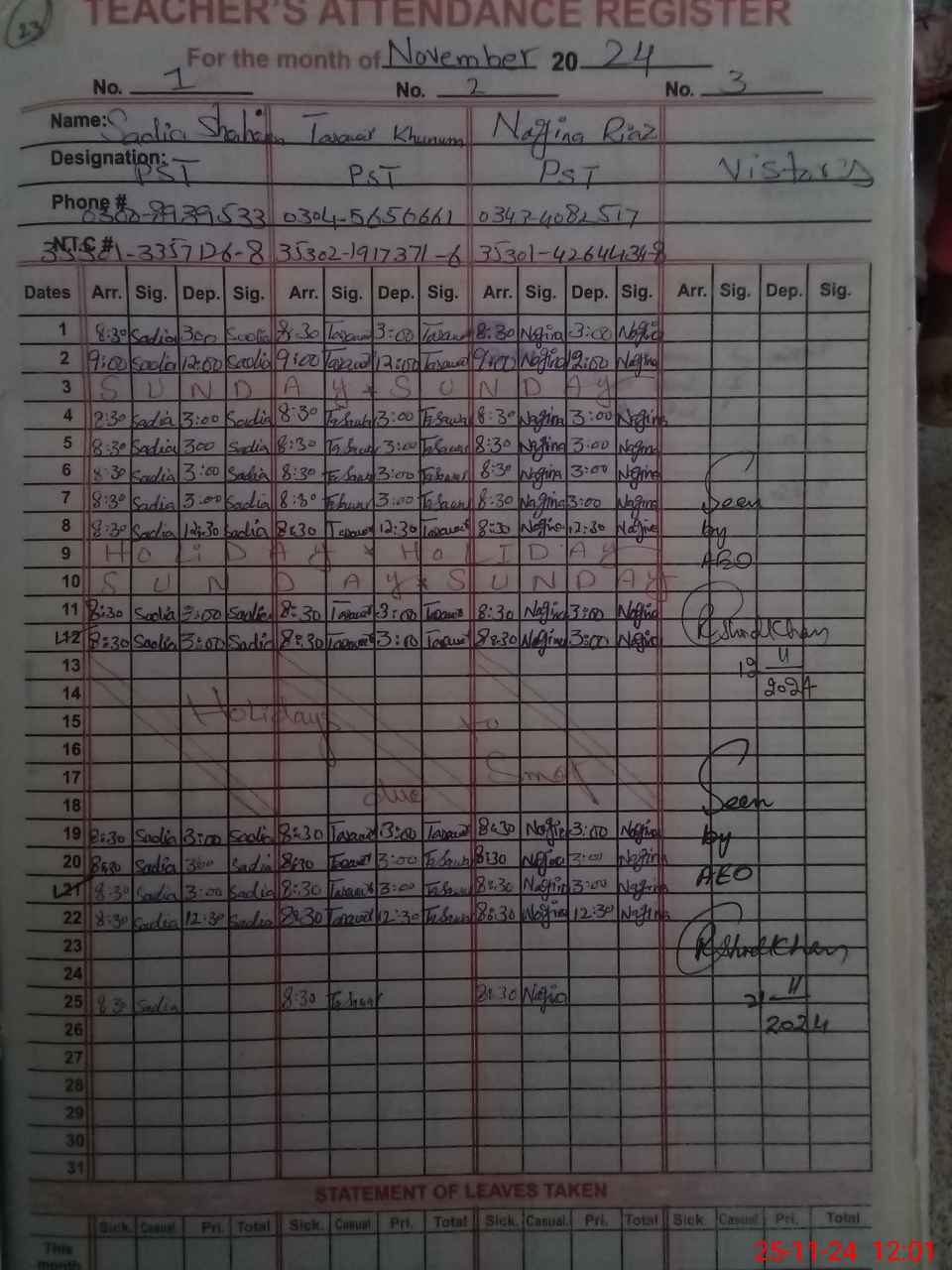 | Name: Sa**** Sh**** Designation: (School Headmaster's/Headmistress's) PST Phone/Cell Number: 03**** |