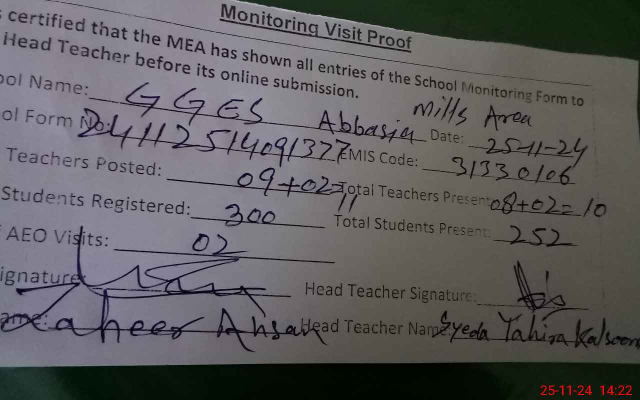 | EMIS Code: 31330106 | Name of School: GGES MC ABBASI MILLS AREA | |||