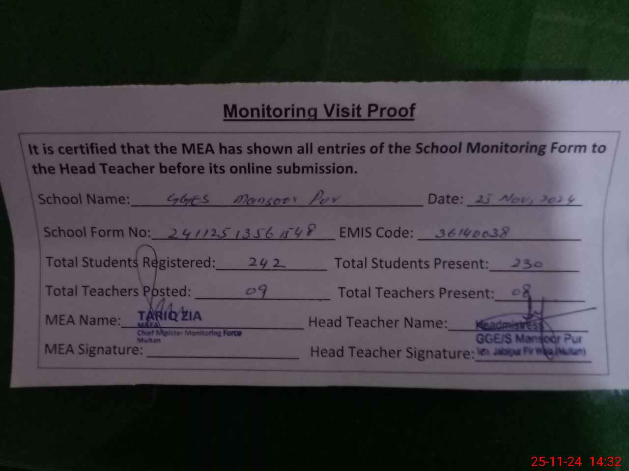 | EMIS Code: 36140038 | Name of School: GGES MANSOOR PUR | |||