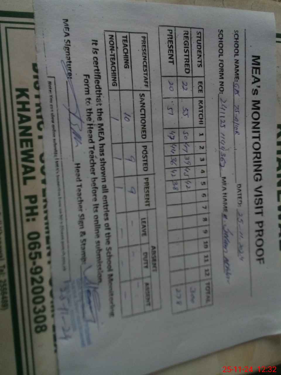 | EMIS Code: 36420208 | Name of School: GPS 75-A/10-R ZAHOOR ABAD, KHANEWAL | |||