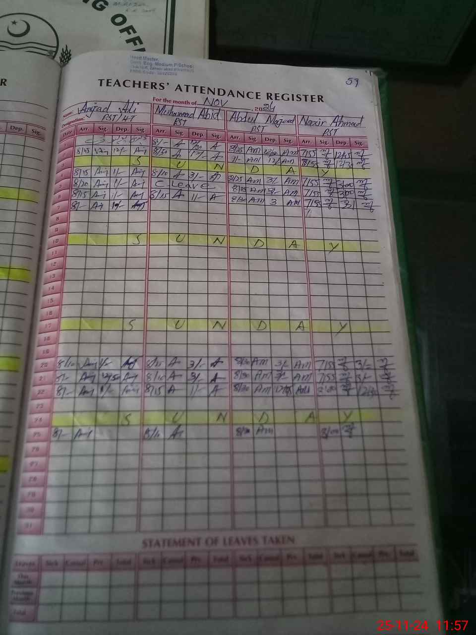 | Name: AM**** AL**** Designation: (School Headmaster's/Headmistress's) PST Phone/Cell Number: 03**** |