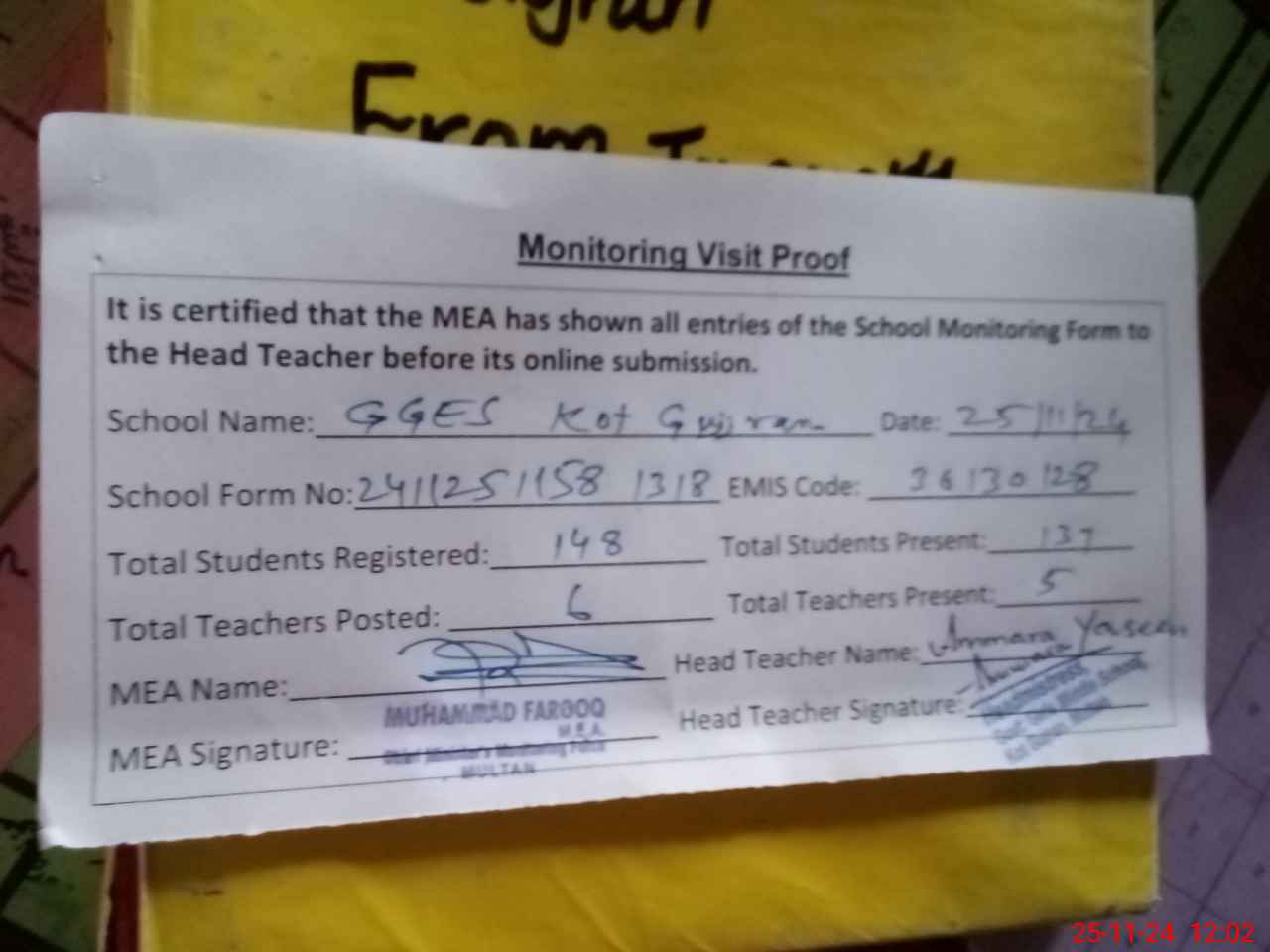 | EMIS Code: 36130128 | Name of School: GGES KOT GUJRAN P/O KOT GUJRAN | |||