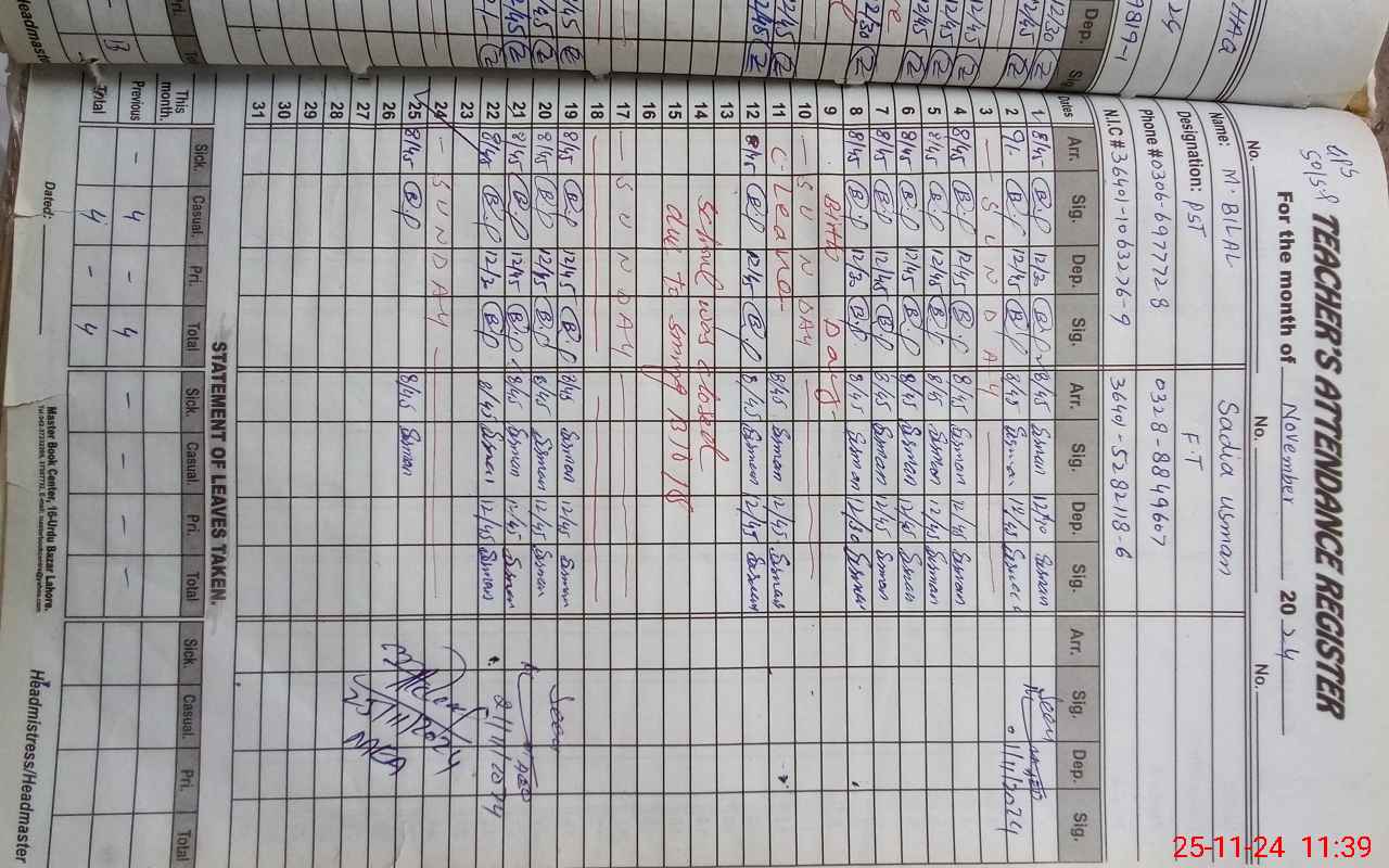 | Name: SH**** AB**** Designation: (School Headmaster's/Headmistress's) PST Phone/Cell Number: 03**** |