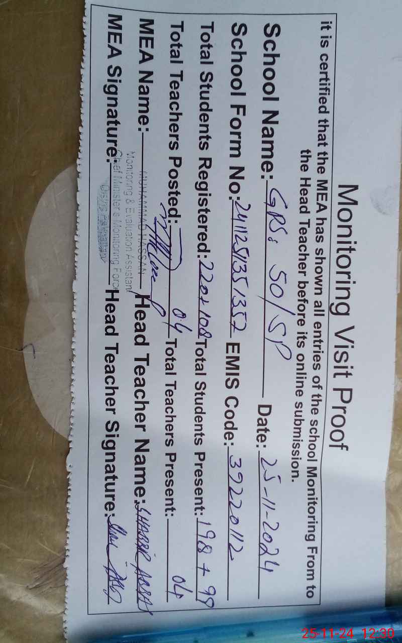 | EMIS Code: 39220112 | Name of School: GPS 50 SP | |||