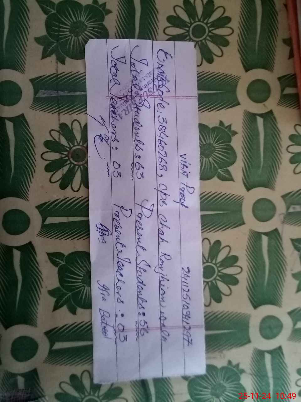 | Attendance Register | Head Teacher | MEA with School | Visit Proof |