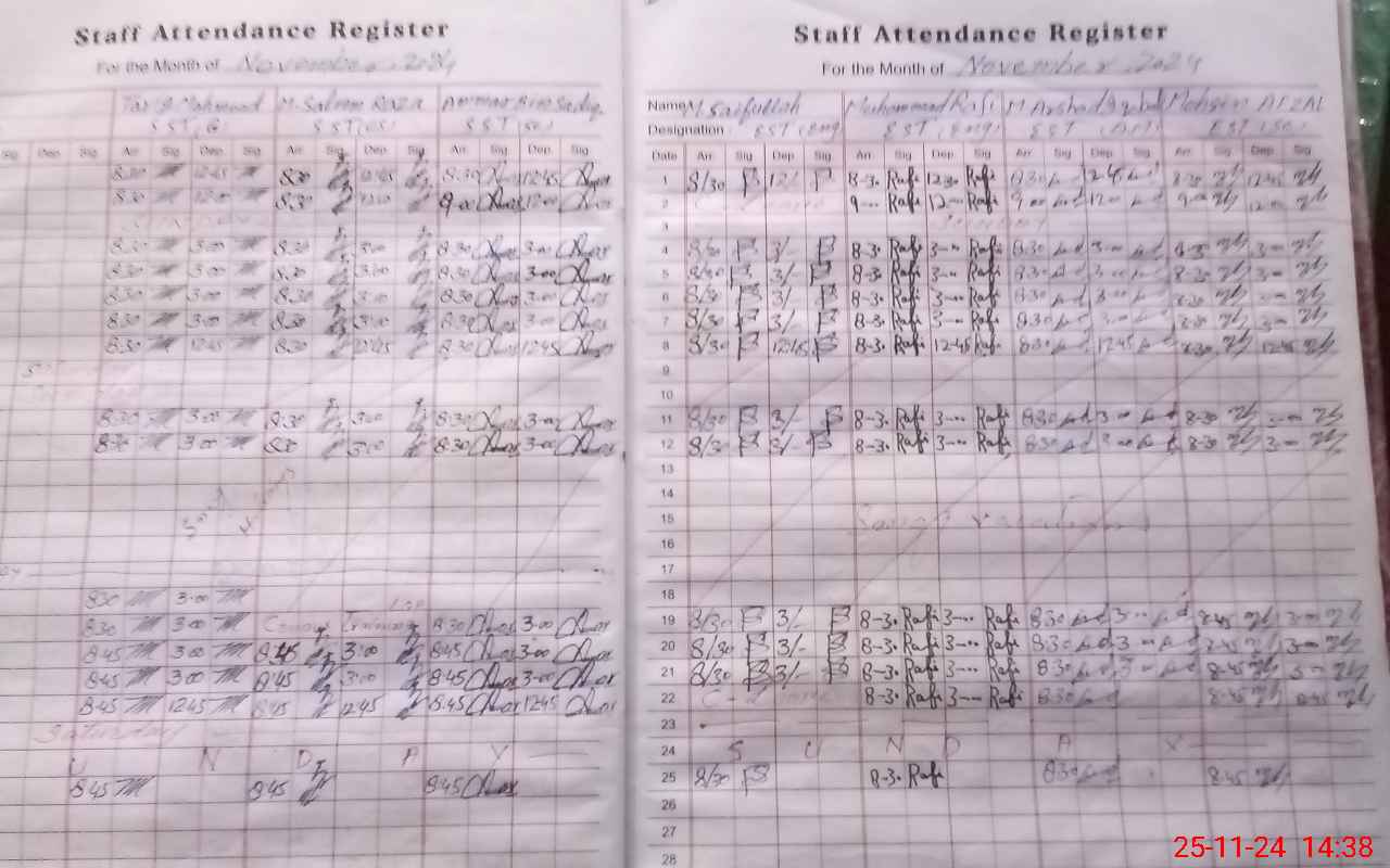 | CNIC | Full Name | Designation | R/C | Absence During Last Calender Month |