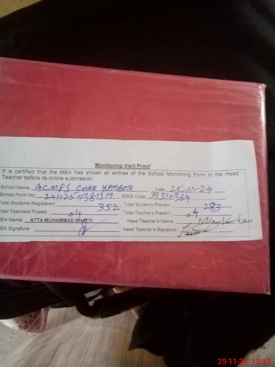 | EMIS Code: 39310564 | Name of School: GCMPS CHAK KAMBOH | |||