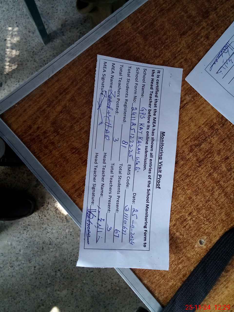 | EMIS Code: 31110671 | Name of School: GPS KAT KALY WALI | |||