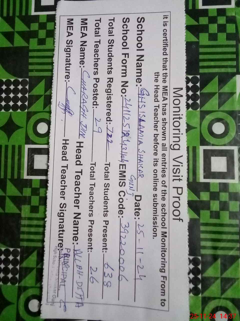 | EMIS Code: 39220006 | Name of School: GHS ISLAMIA SHAKARGUNJ | |||