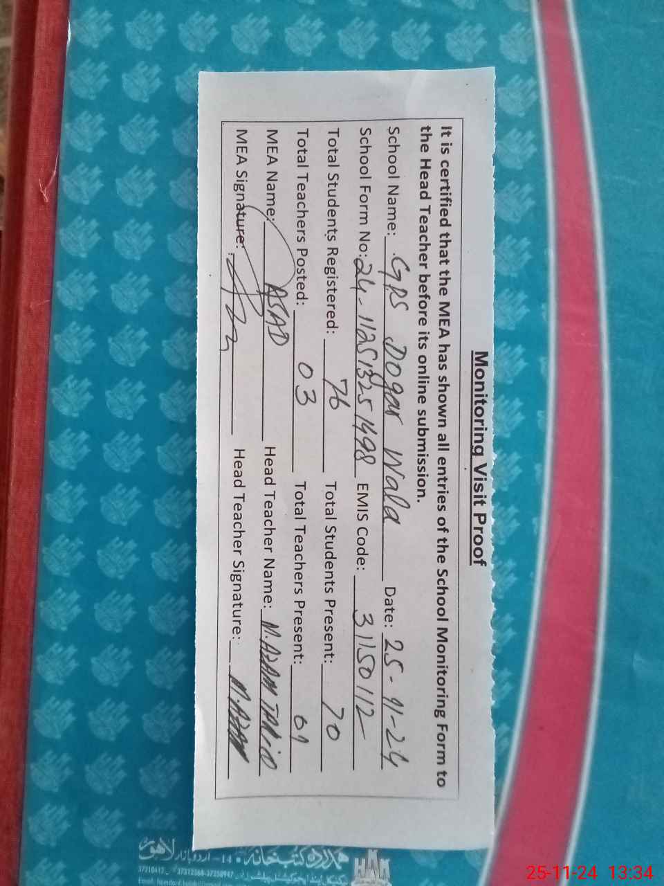 | EMIS Code: 31150112 | Name of School: GPS DOGAR WALA | |||