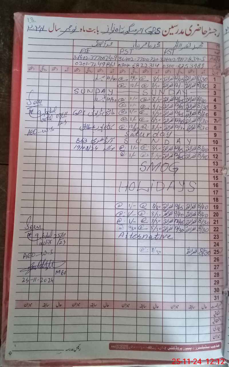 | Name: MAm**** Ni**** Designation: (School Headmaster's/Headmistress's) PST Phone/Cell Number: 03**** |