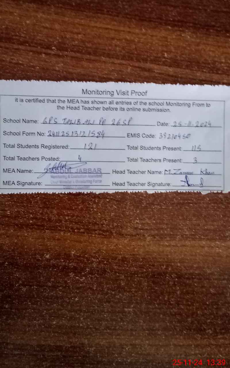| EMIS Code: 39210450 | Name of School: GPS TALIB ALI P/O 26 S.P | |||