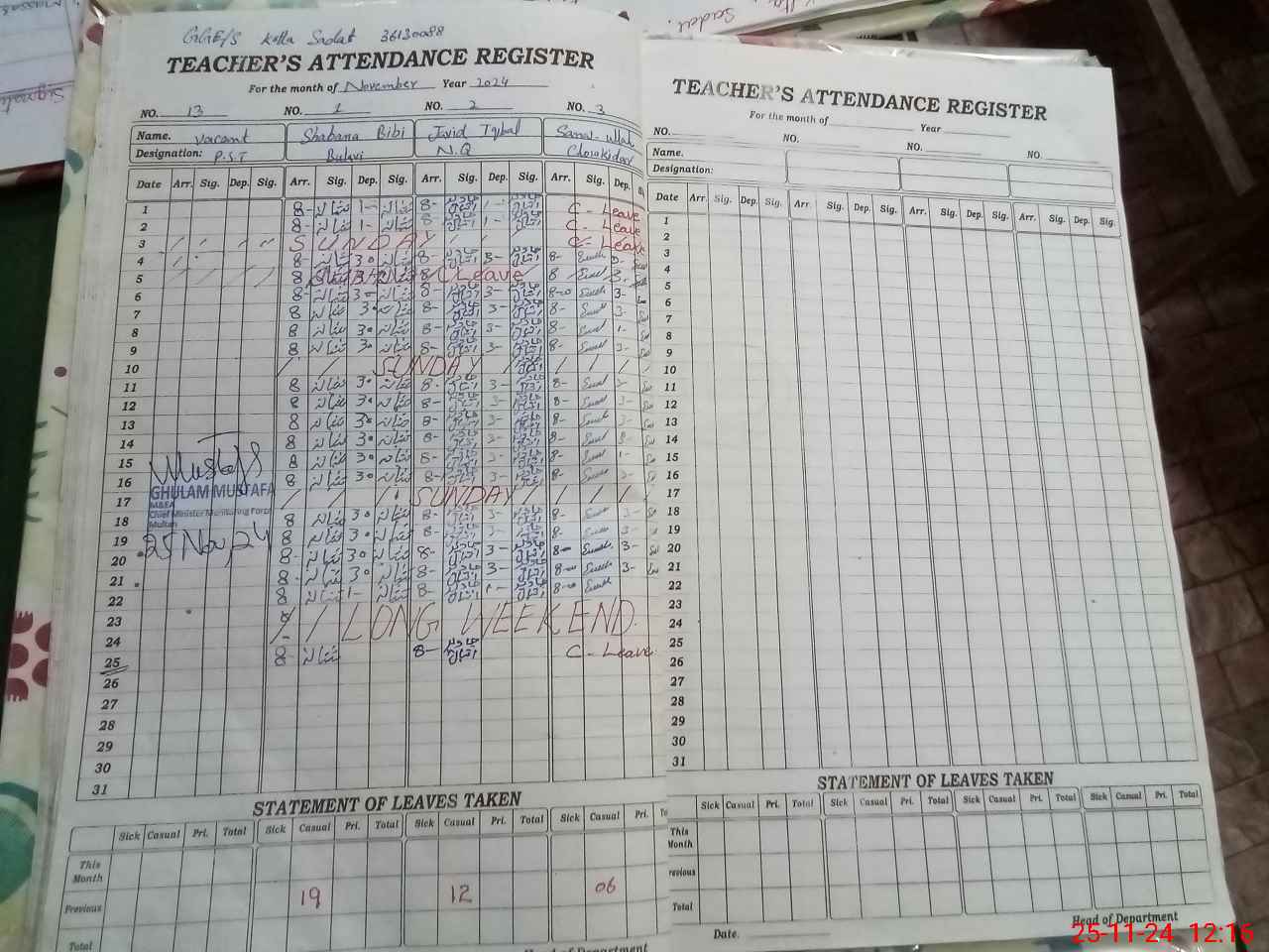 | 00**** | Sa**** Ul**** | CHOWKIDAR | Regular | 0 | 0 | 0 | 0 | 0 | 0 | 0 | 0 | 6 | Casual |