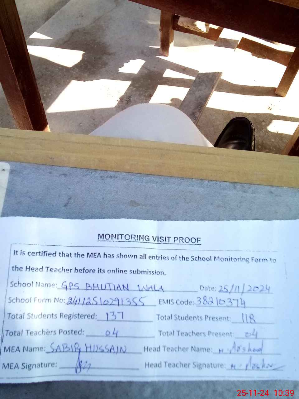 | EMIS Code: 38210374 | Name of School: GPS BHUTTIAN WALA | |||